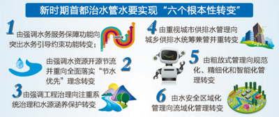 北京市水務(wù)局負責(zé)人在接受記者采訪時表示,北京將按照“節(jié)水優(yōu)先、空間均衡、系統(tǒng)治理、兩手發(fā)力”的治水新思路,以水資源安全保障為中心,以供水安全、防洪排澇安全、水生態(tài)環(huán)境改善為主線,加強城鄉(xiāng)一體化水務(wù)基礎(chǔ)設(shè)施建設(shè),加快推進“六個根本性轉(zhuǎn)變”,全面提高水安全保障能力,為建設(shè)國際一流的和諧宜居之都提供堅實的水務(wù)支撐。